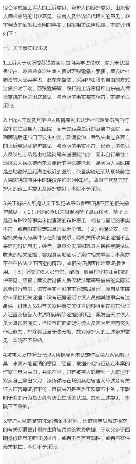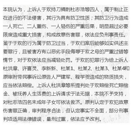 “于欢案”二审宣判:一审部分量刑过重,予以改判有期徒刑5年(附判决书)