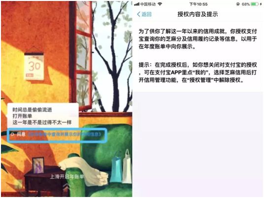 账单背后的隐藏条款引来网友不满。昨天深夜,支付宝针对报道紧急作出调整,连夜取消2017账单默认同意选项,《芝麻服务协议》已经变更为《在年账单中查询并展示你的信用信息》: