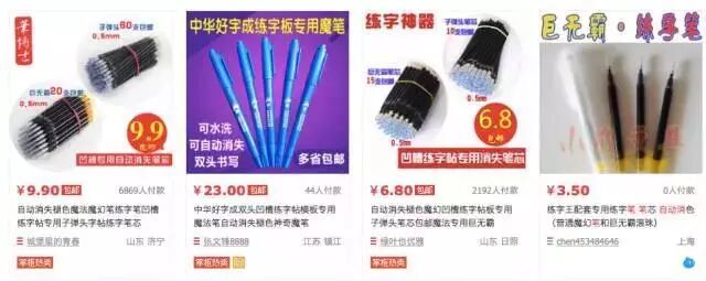 “自动褪色魔术笔”外形与普通签字笔无异,只是采用了特殊墨水。该墨水书写出来的字迹也与普通签字笔没有任何差别。淘宝网上浏览发现,此笔以服装专用褪色笔、记号笔、自动消失笔、退色笔、气消笔、水溶笔等名称进行销售,售价一般在5毛钱到50元不等,销量甚好。
