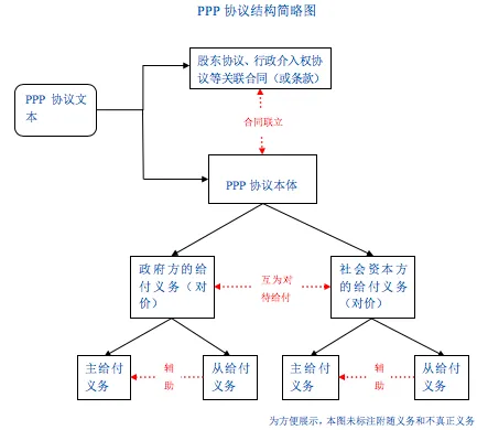 实际上,为满足项目一体化交易的需求,PPP协议大多会以合同联立的形态出现。除了PPP协议本体(也即“社会资本方完成投资建设运营⇆政府方提供经济增益措施或其他优惠手段”的对价组合),承载PPP协议本体的文本往往还会被加入一些另具独立个性但又有一定依存关系的协议(或条款),比如约定项目公司注册资本、股权结构、经营范围、公司治理、股权转让等内容的股东协议(或条款),或者允许政府方在突发状态下紧急介入或临时接管项目的行政介入权协议(或条款)等。