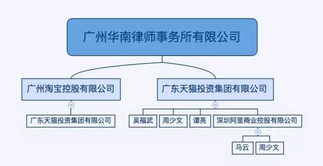 当晚广州市司法局律管部门发现相关舆情,立即向省厅、市局领导汇报,并根据省厅、市局领导指示,启动应急方案,紧急采取相关措施。经网络搜索,该公司股东广州淘宝控股有限公司又是广东天猫投资集团有限公司的子公司,而广东天猫投资集团有限公司的股东里面又出现了深圳阿里商业控股有限公司,再来看看深圳阿里商业控股有限公司的股东,马云!看到这些信息,虽然马云只是占有5%股份的小股东,但律师们纷纷热议:这事竟然跟马云有关啊!马云要进军法律服务业啦?!